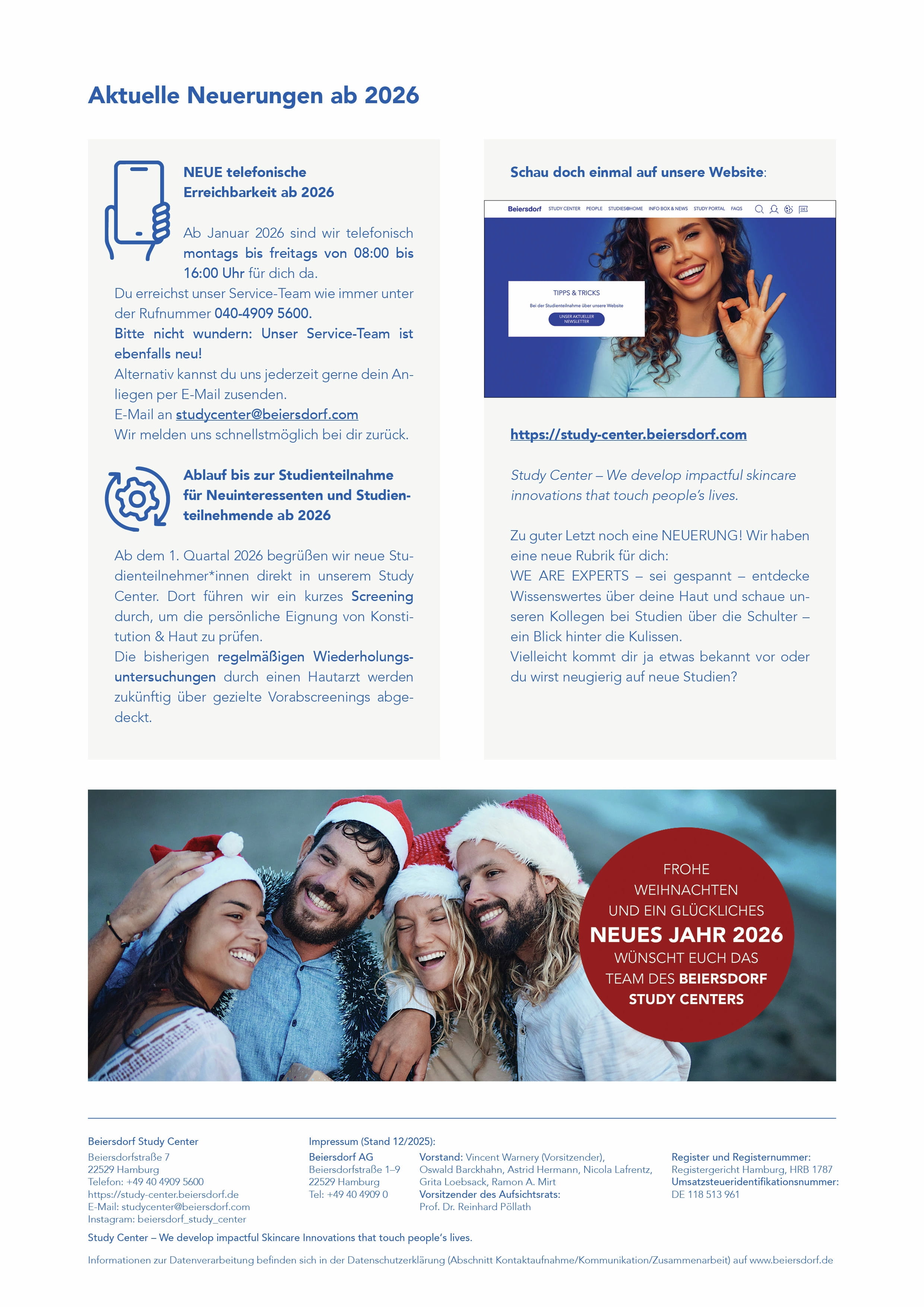 In unserem Newsletter findet ihr Geschichten für und von unseren Studienteilnehmer*innen.